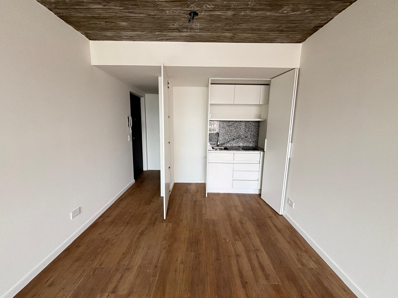 Departamento venta ubicado en un piso 5 al frente, externo con balcón orientado al Norte con vista completamente despejada. Ambiente único con cocina integrada, espacio cubierto para lavarropas y baño con habitáculo.